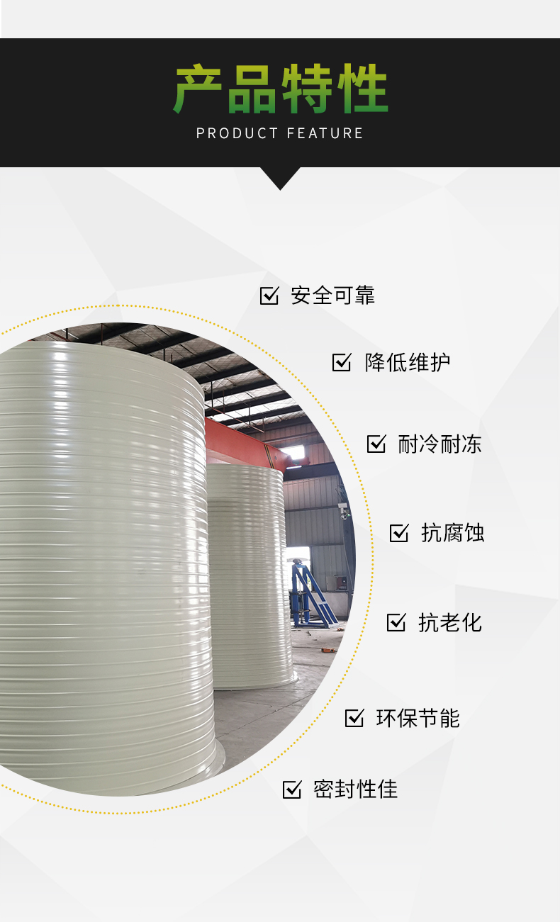 PPH儲罐是一種通(tōng)過螺旋擠出纏繞技術生產製作而成的全塑(sù)結構的耐腐蝕常壓儲罐,PPH儲(chǔ)罐現在已成為已成為醫藥、印染、食品、油脂、環保、冶金、輕(qīng)工(gōng)、石油、化(huà)工、等行業所需(xū)要的設備主要用於(yú)生產中物料的(de)貯存、暫存等。